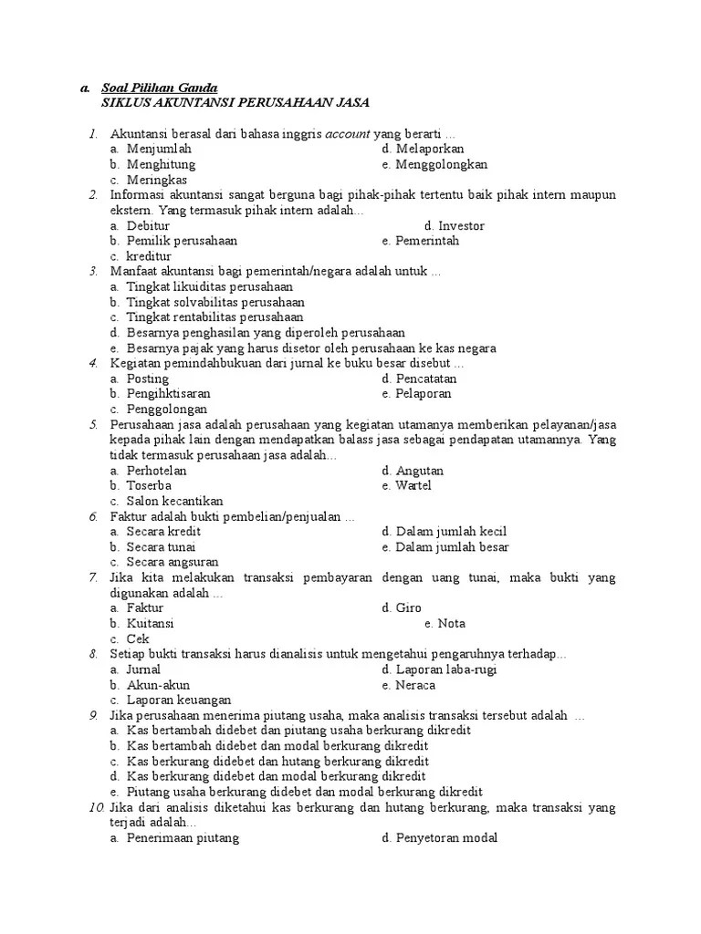 Soal ekonomi kelas xii bab 3 siklus akuntansi perusahaan jasa lengkap dengan kunci jawaban dan pembahasannya. Kegiatannya sama mulai dari pencatatan semua transaksi. Pada dasarnya, tidak ada yang jauh berbeda dari siklus akuntansi perusahaan jasa maupun dagang. Menjelaskan prisip dasar akuntansi dan etika, menerapkan siklus akuntansi pada perusahaan jasa dan dagang berbentuk umkm, melakukan jurnal penyesuaian, . Akuntansi dengan microsoft excel (akuntansi perusahaan jasa dan dagang).